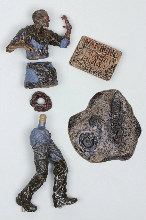 Die bewegliche Figur des Mud Walkers kommt mit Schlamm als Standbase, sowie dem Schild „Warning Flash Flood Area“ als Zubehör.